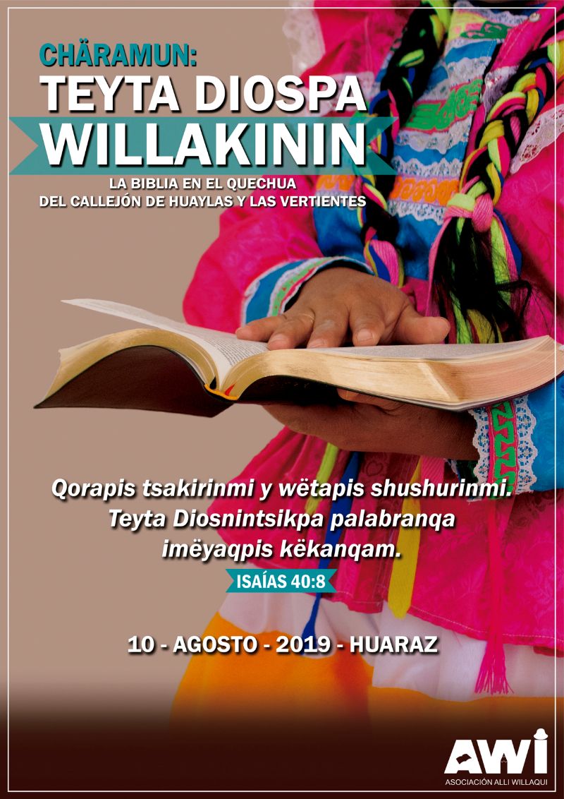 Below is a shot of the poster announcing the Bible dedication to be held August 10th in Huaraz. People are excited! Look up Isaiah 40:8 to see what the verse in Quechua says.